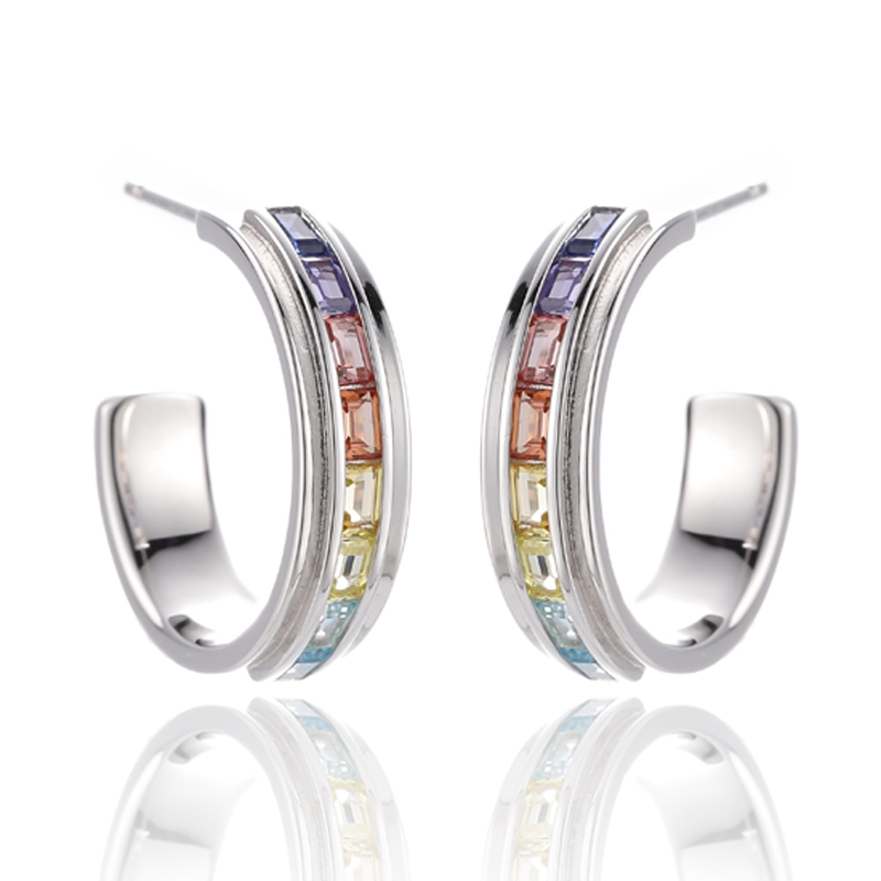 6.75Ohrring aus rhodiniertem Silber mit Baguette-Regenbogen-Zirkonia