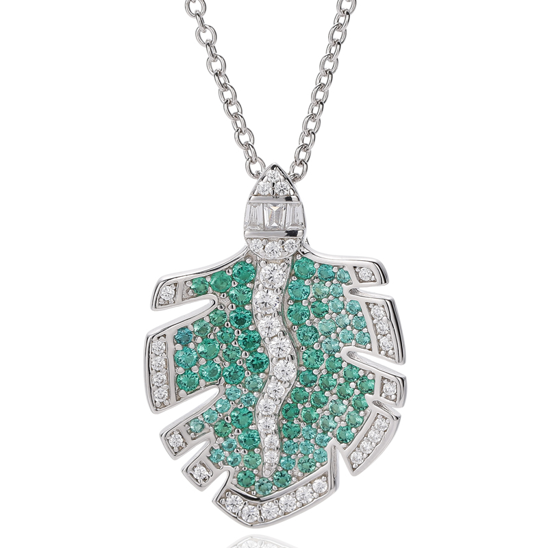 3.71Runder Anhänger aus grünem Nano-Zirkonia und spitz zulaufendem weißen Zirkonia in Rhodium-Silber