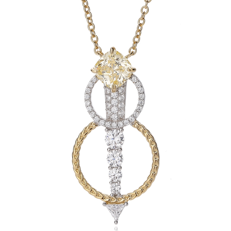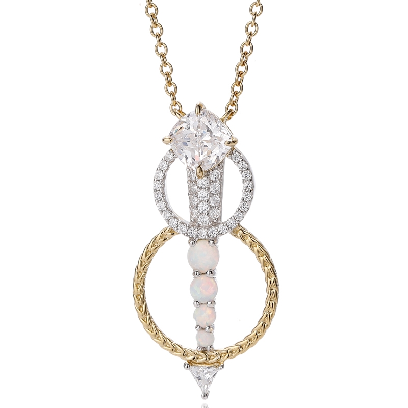 4.81Runder Opal- und kissenförmiger weißer Zirkonia-Silberanhänger mit zweifarbiger Versilberung
